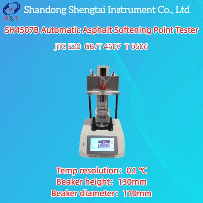 The SH4507B automatic asphalt softening point tester is designed and manufactured in accordance with the requirements specified in the industry standards JTG E20 "Test Code for Asphalt and Asphalt Mixtures in Highway Engineering" (T 0606 "Asphalt Softening Point Test (Global Method)" and GB/T 4507 "Determination of Softening Point of Petroleum Asphalt" of the People's Republic of China.