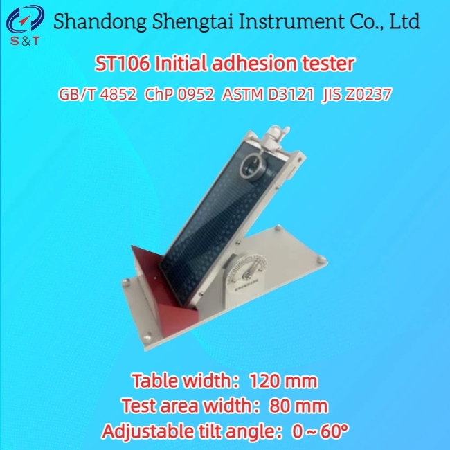 Các máy kiểm tra bám bắt đầu ST106, còn được gọi là máy kiểm tra bám bắt đầu, Tape Adherence Testers were designed and manufactured in accordance with the requirements of the new 2025 Chinese Pharmacopoeia 0952 Determination of Adherence Force - Determination of Initial Adherence Force - Method 1Thiết bị sử dụng phương pháp cuộn bóng nghiêng, và băng dán, nhãn,và các sản phẩm khác được sử dụng để kiểm tra lực dính ban đầu của quả bóng thép thông qua một tiếp xúc ngắn giữa quả bóng thép và bề mặt dính của mẫu thử nghiệm với một áp suất nhẹNó phù hợp với băng keo nhạy cảm với áp suất, miếng dán y tế, nhãn keo, phim bảo vệ và các sản phẩm liên quan khác để kiểm tra độ nhớt ban đầu.