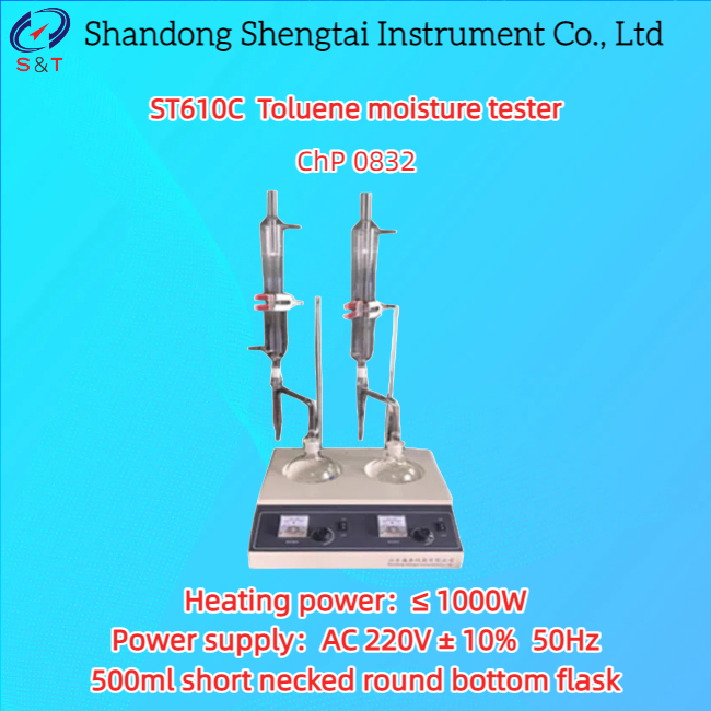 Máy đo độ ẩm phương pháp toluene ST610C được thiết kế và sản xuất theo các yêu cầu kỹ thuật và quy định liên quan của phương pháp toluene thứ tư trong phương pháp xác định độ ẩm 0832 Dược điển năm 2025. Nó chủ yếu thích hợp để xác định độ ẩm của dược liệu Trung Quốc, chế phẩm và các vật liệu khác.