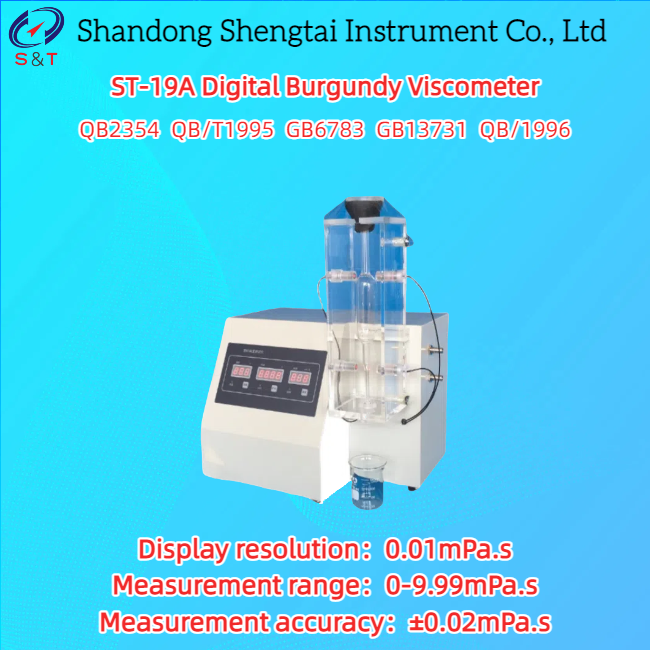 Máy đo độ nhớt kỹ thuật số Burgundy ST-19A là một thiết bị chuyên dụng được sử dụng để đo độ nhớt Burgundy của gelatin. Nó được thiết kế và sản xuất theo tiêu chuẩn QB2354 cho gelatin dược phẩm, đồng thời tuân thủ các tiêu chuẩn QB/T1995, GB6783, GB13731, QB/1996. Việc đo độ nhớt Burgundy của gelatin là một chỉ số quan trọng phản ánh trình độ công nghệ sản xuất gelatin và kiểm soát chất lượng sản xuất gelatin. Nó cũng áp dụng cho việc kiểm tra hiệu suất độ nhớt của tất cả các loại gelatin như gelatin ăn được, gelatin dược phẩm, gelatin công nghiệp, keo xương, v.v.; Kiểm tra độ nhớt của các chất lỏng gelatin như agar và bột protein.