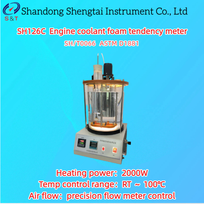 SH126C engine coolant foam tendency tester is designed according to the requirements of the People's Republic of China petrochemical industry standard SH/T0066 "engine cooling foam determination method", phù hợp để xác định bọt chất làm mát động cơ pha loãng hoặc tập trung theo phương pháp thử nghiệm của tiêu chuẩn SH/T0066.
