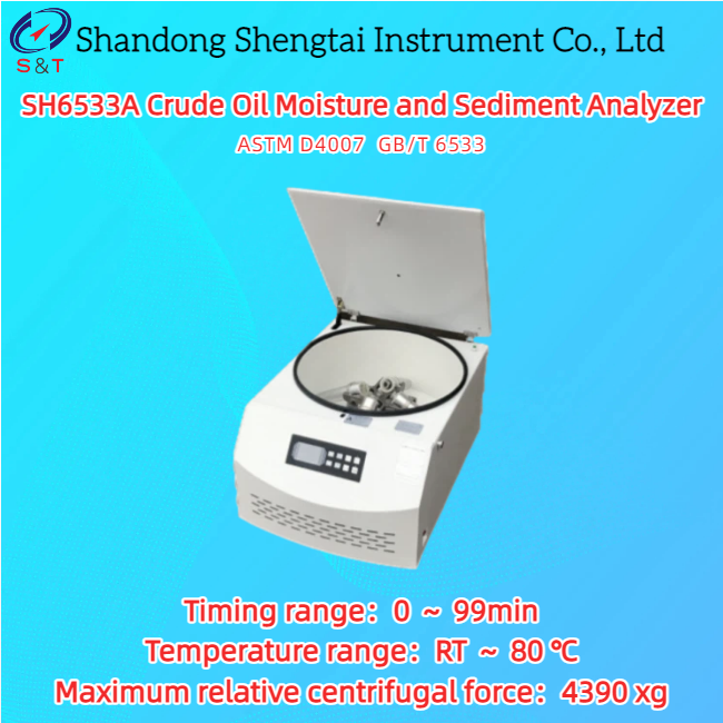 Máy phân tích độ ẩm và cặn dầu thô SH6533A được thiết kế để xác định độ ẩm và cặn trong dầu thô bằng phương pháp ly tâm, đáp ứng các yêu cầu của tiêu chuẩn GB/T 6533-86. Sử dụng phương pháp tách ly tâm để xác định nước và cặn trong dầu thô. Đây là thiết bị tách lý tưởng để xác định độ ẩm trong ngành khai thác dầu và các tổ chức nghiên cứu khoa học.