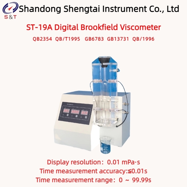 The ST-19A digital Brookfield viscometer is a specialized instrument designed for measuring the Brookfield viscosity of gelatin, adhering to the QB2354 standard for "Pharmaceutical Gelatin" and complying with QB/T1995, GB6783, GB13731, and QB/1996. The determination of Brookfield viscosity of gelatin serves as a crucial indicator reflecting the production process level and quality control of gelatin. It is suitable for viscosity performance testing of all types of gelatin, including edible gelatin, pharmaceutical gelatin, industrial gelatin, and bone glue, as well as viscosity testing of gelatin-like liquids such as agar and protein powder.